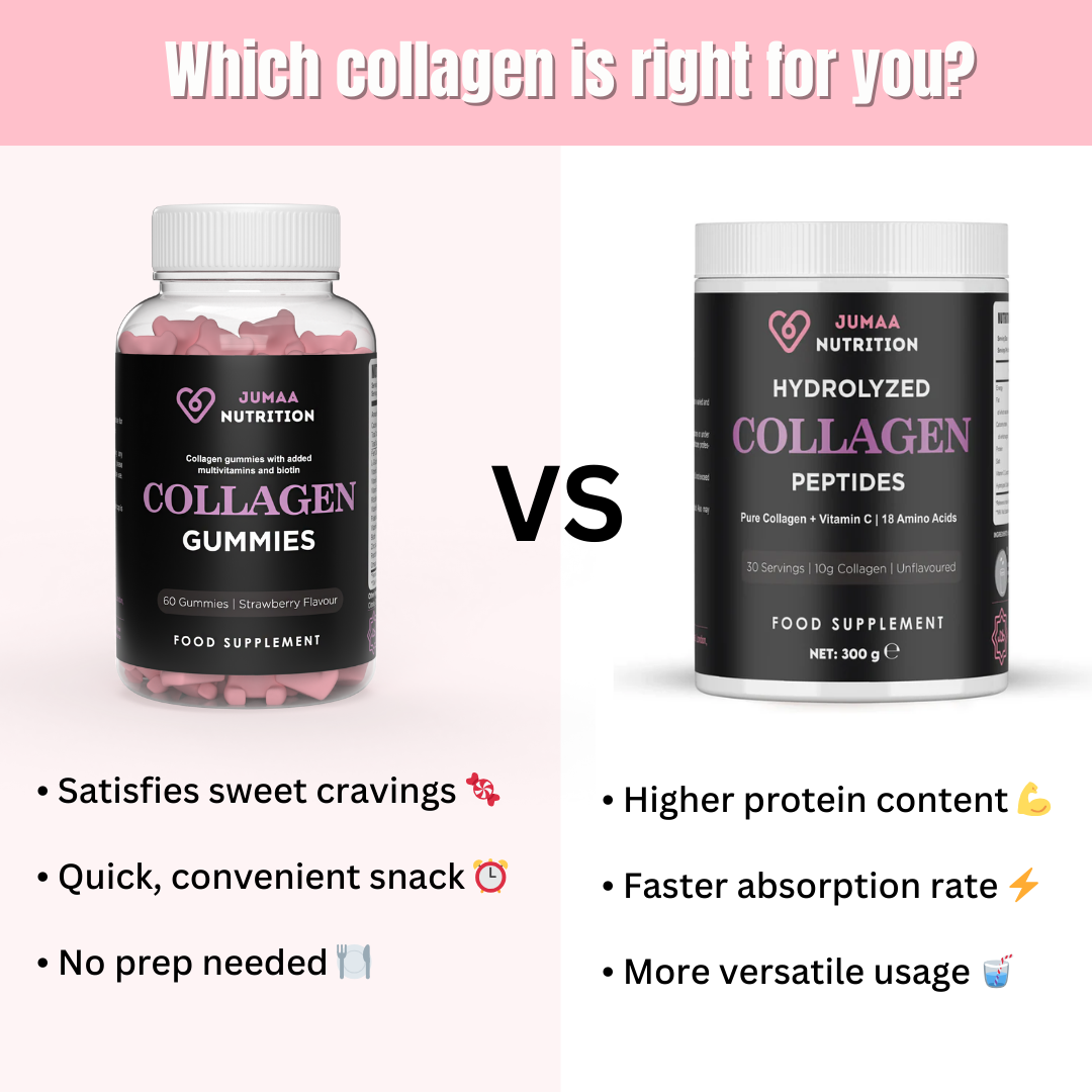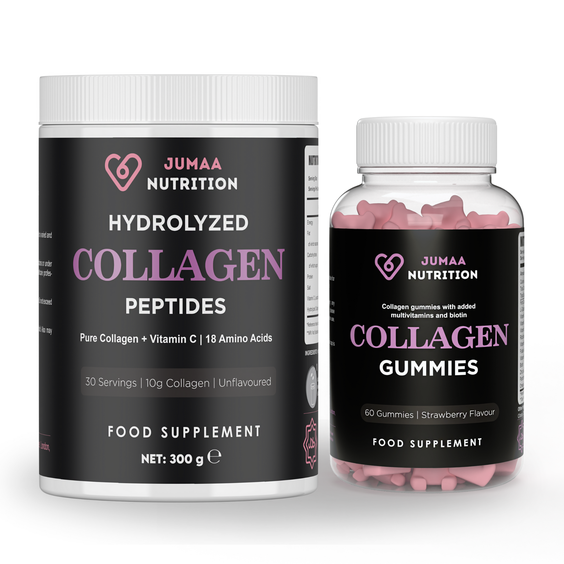 Transform your wellness routine with our Ultimate Collagen Bundle, combining the powerful benefits of our Halal Collagen Peptides with Vitamin C Powder and our tasty Collagen and Multivitamin Gummies. This bundle is designed to support your body’s natural collagen production, helping you look and feel your best.